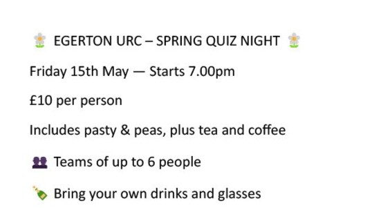 πΌ EGERTON URC β SPRING QUIZ NIGHT πΌ